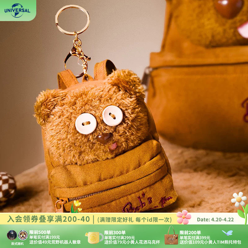 环球影业小黄人TIM熊麂皮背包挂件动漫卡通毛绒包挂零钱包钥匙扣