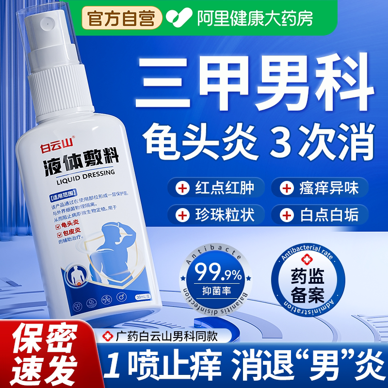 白云山龟头炎喷剂包皮白垢私处清洗液真菌感染抑菌止瘙痒男性专用