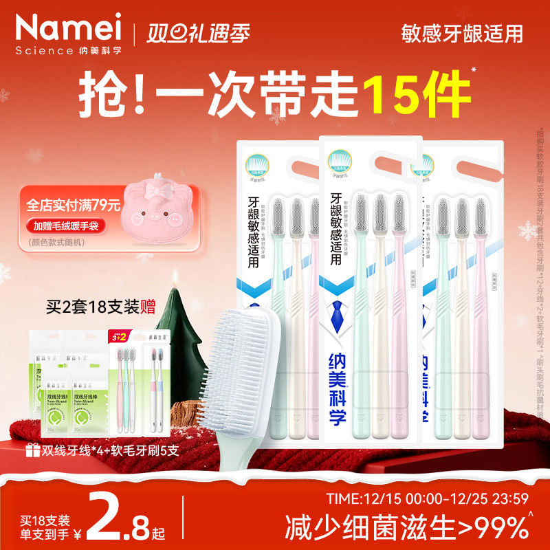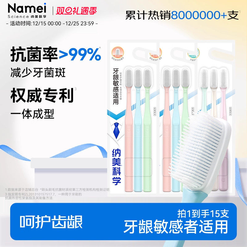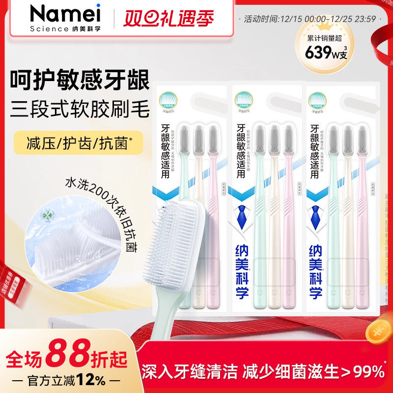 纳美纳米牙刷超细男士抗菌中头成人组合装家用女士软毛家庭实惠装
