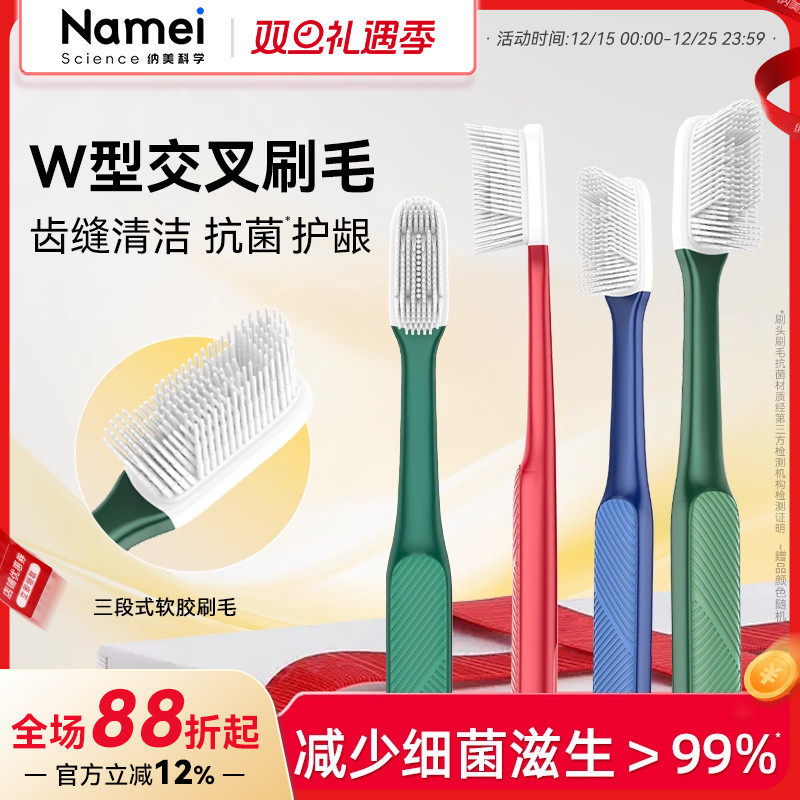 纳美纳米牙刷软毛W型款成人家庭装组合情侣装女士男士专用牙缝刷