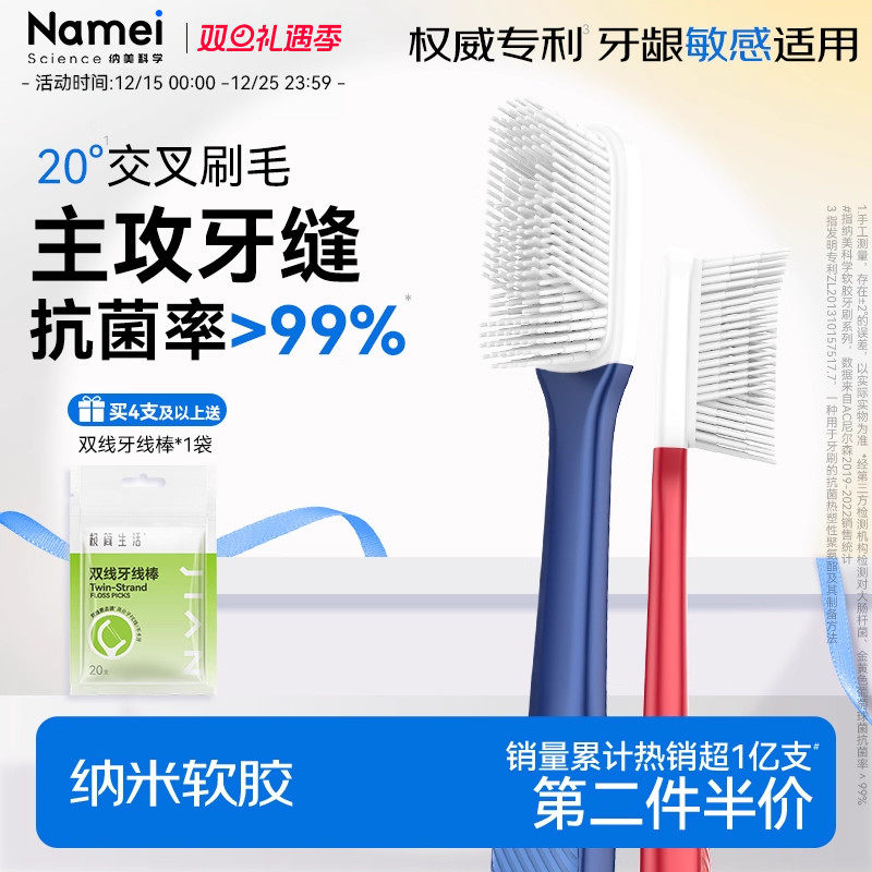纳美纳米牙刷软毛成人家庭装男士牙缝刷专用情侣大头软胶清洁科学