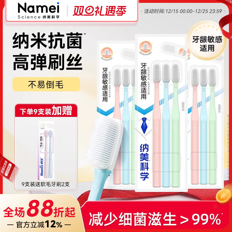 纳美纳米牙刷成人软毛牙刷家庭组合装口腔清洁男士专用牙刷女9支