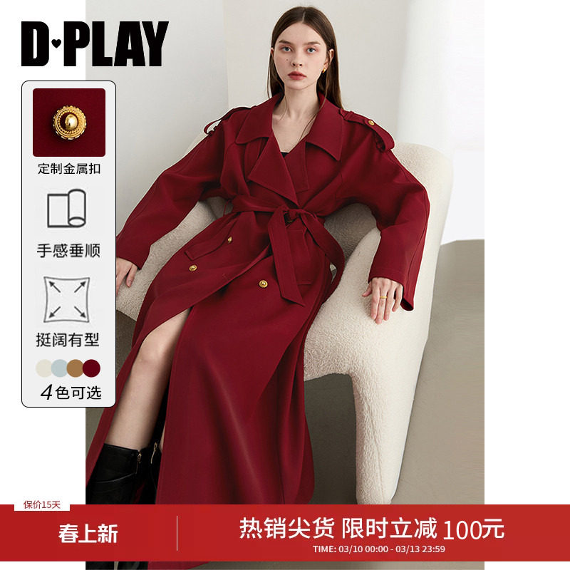 - 风衣女长款红