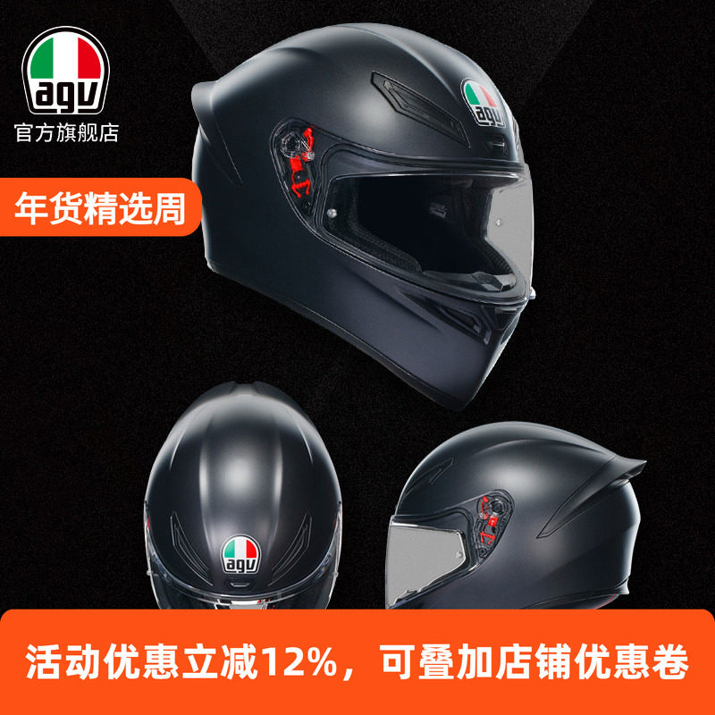 意大利AGV单镜片K1哑黑摩托车头盔骑行全盔男女赛车跑盔机车防雾