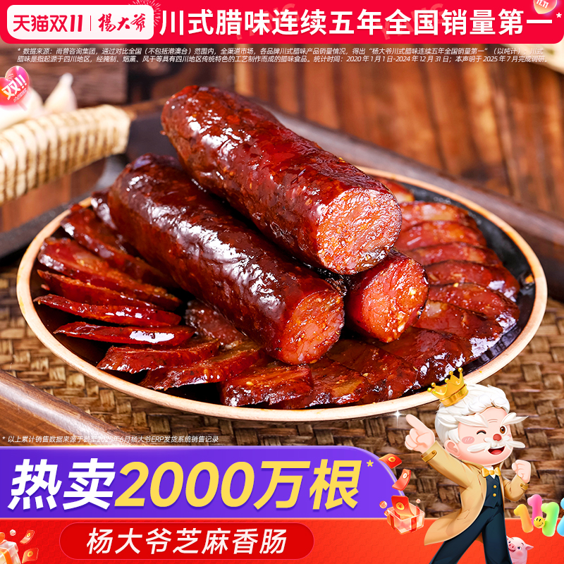 杨大爷芝麻麻辣香肠500g四川特产川味烟熏腊肠农家自制麻辣肠腊肉