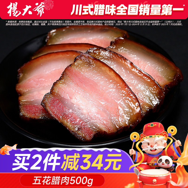 杨大爷五花腊肉500g四川美食特产腊肉农家自制烟熏肥咸肉柴火腊肉