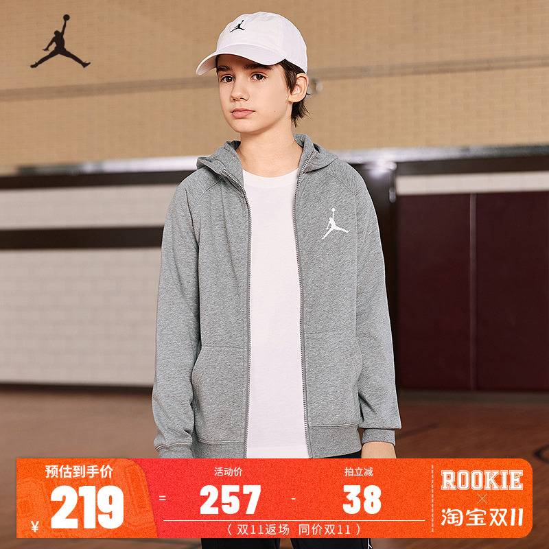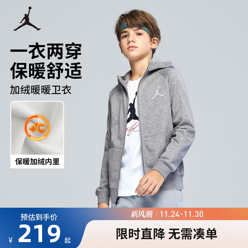 Jordan儿童装男童卫衣开衫加绒2025冬季新款上衣运动女童休闲外套