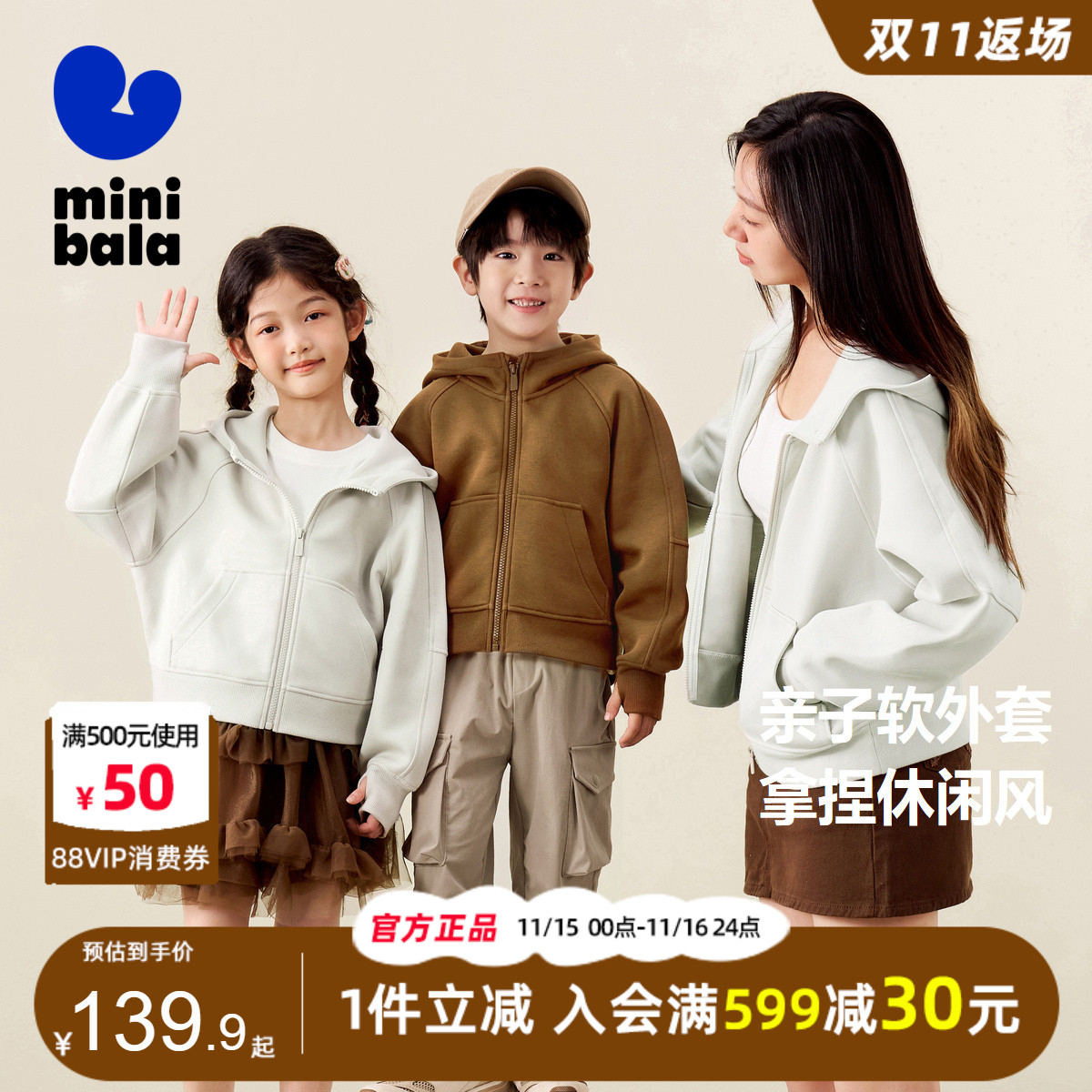 迷你巴拉巴拉女童休闲外套秋季新款男童运动卫衣亲子装开衫上衣潮