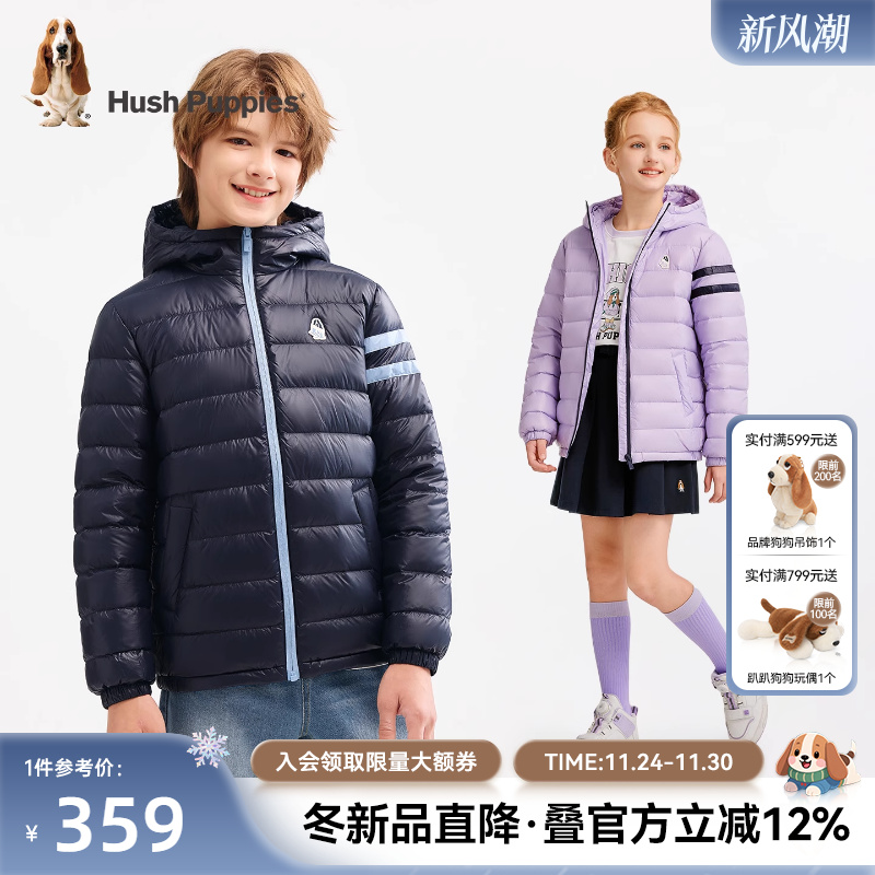 暇步士童装儿童轻薄羽绒服2025冬季新款男童保暖连帽女童休闲外套