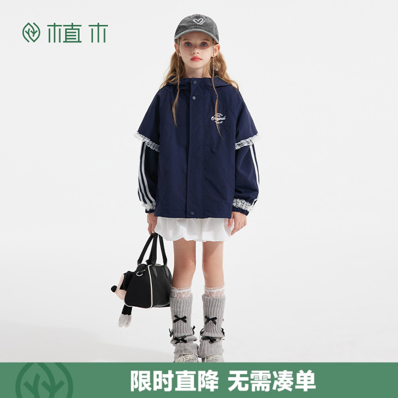 植木童装 儿童外套2025秋季新款男童防水连帽外套女童休闲外套