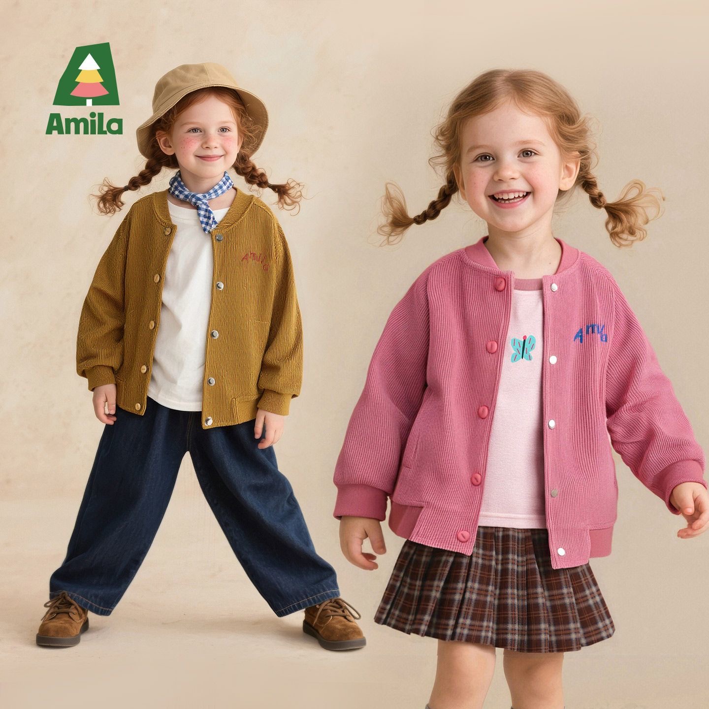 Amila女童休闲外套2025春秋款儿童宝宝棒球服小女孩运动夹克开衫