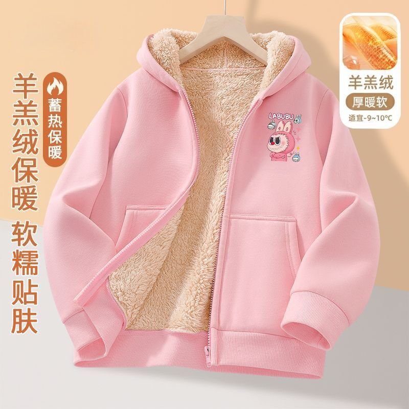 尾大狸女童休闲外套加厚保暖拉布布羊羔绒新款儿童连帽开衫潮卫衣