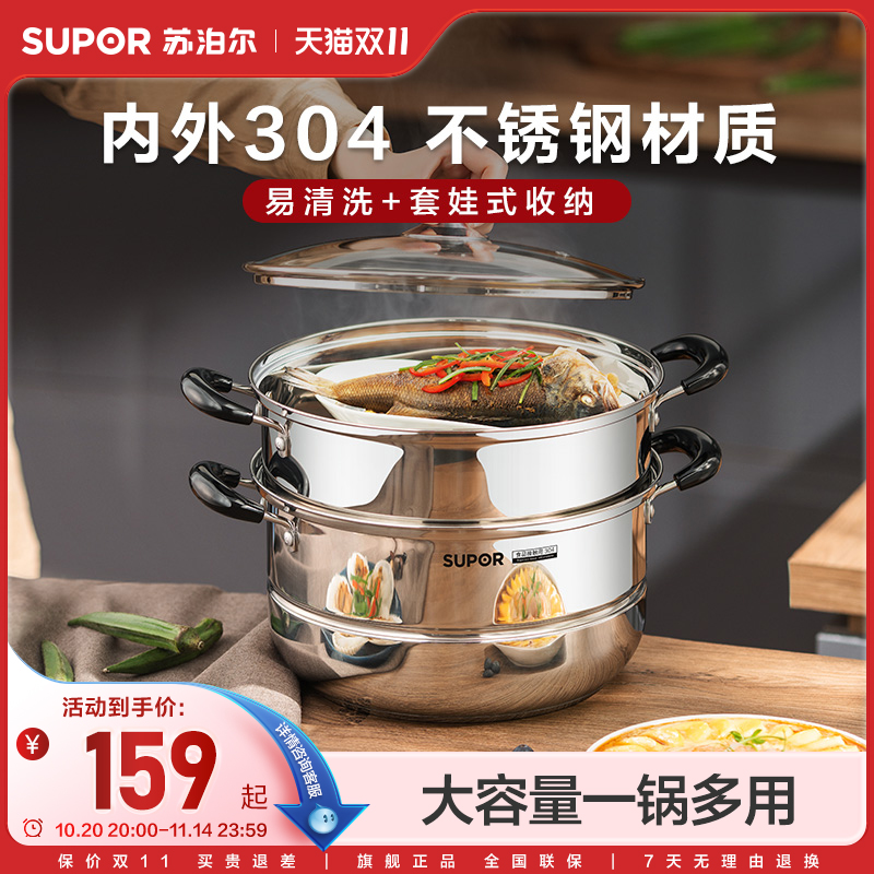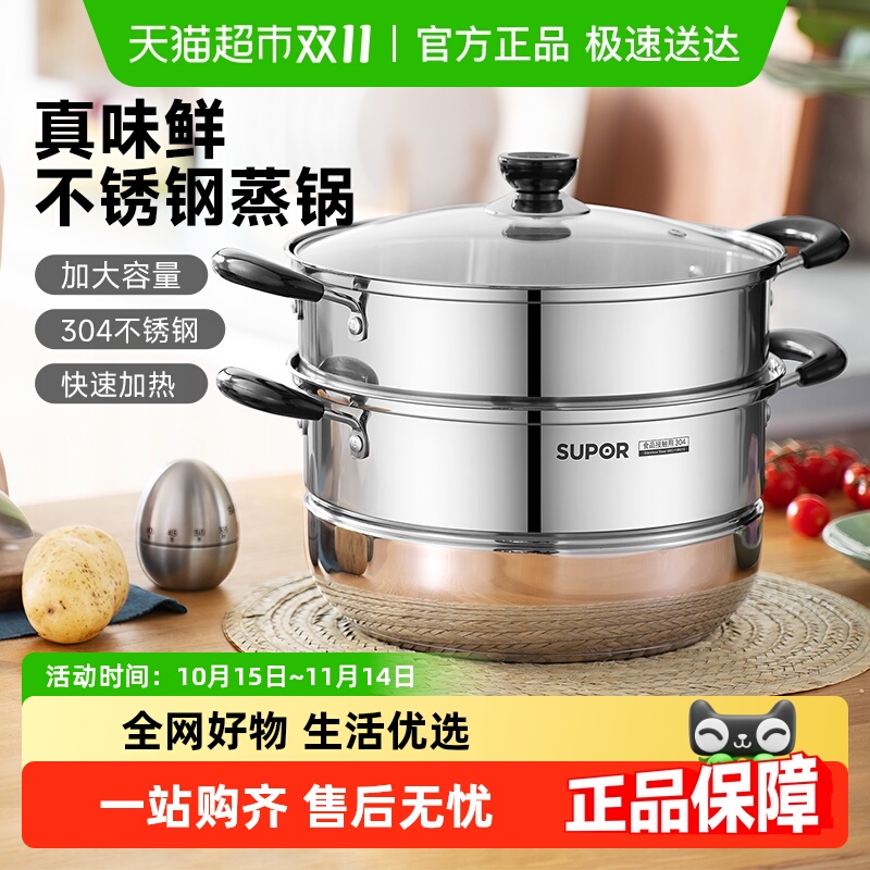 苏泊尔蒸锅家用304不锈钢蒸笼双层三层多层电磁炉煤气灶通用汤锅