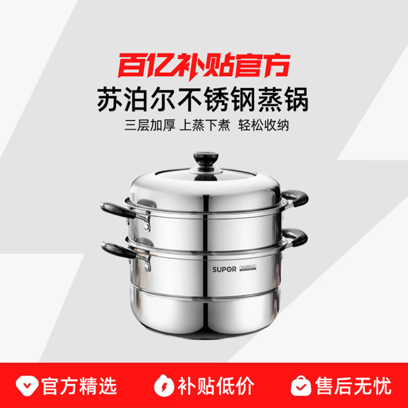 苏泊尔蒸锅家用304不锈钢蒸煮锅大容量蒸笼三层加厚电磁炉汤锅