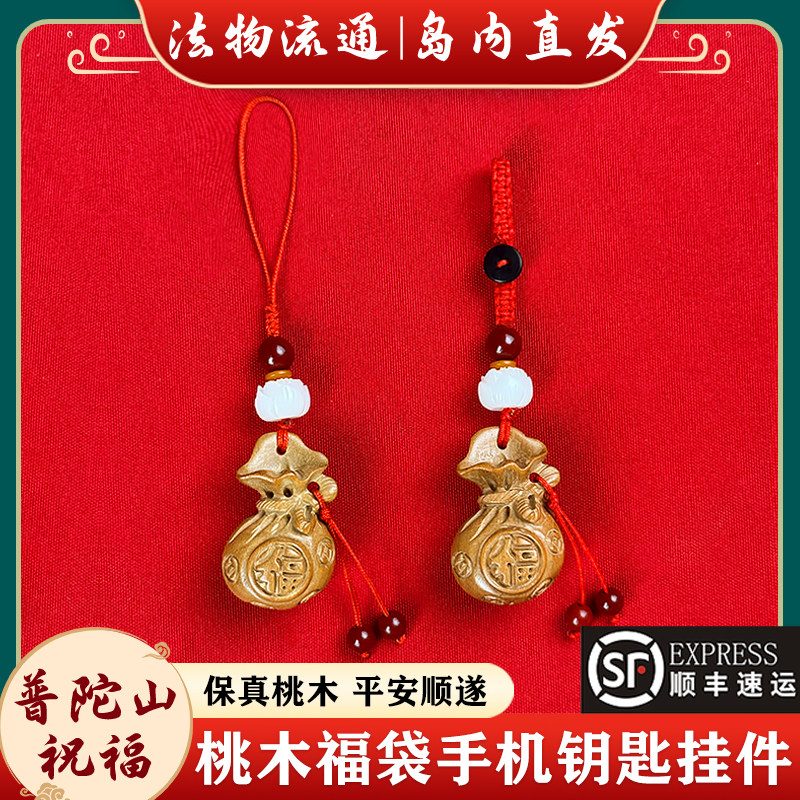 普陀山桃木福袋男女招财钱袋钥匙扣链坠书包手机链挂绳汽车挂饰件