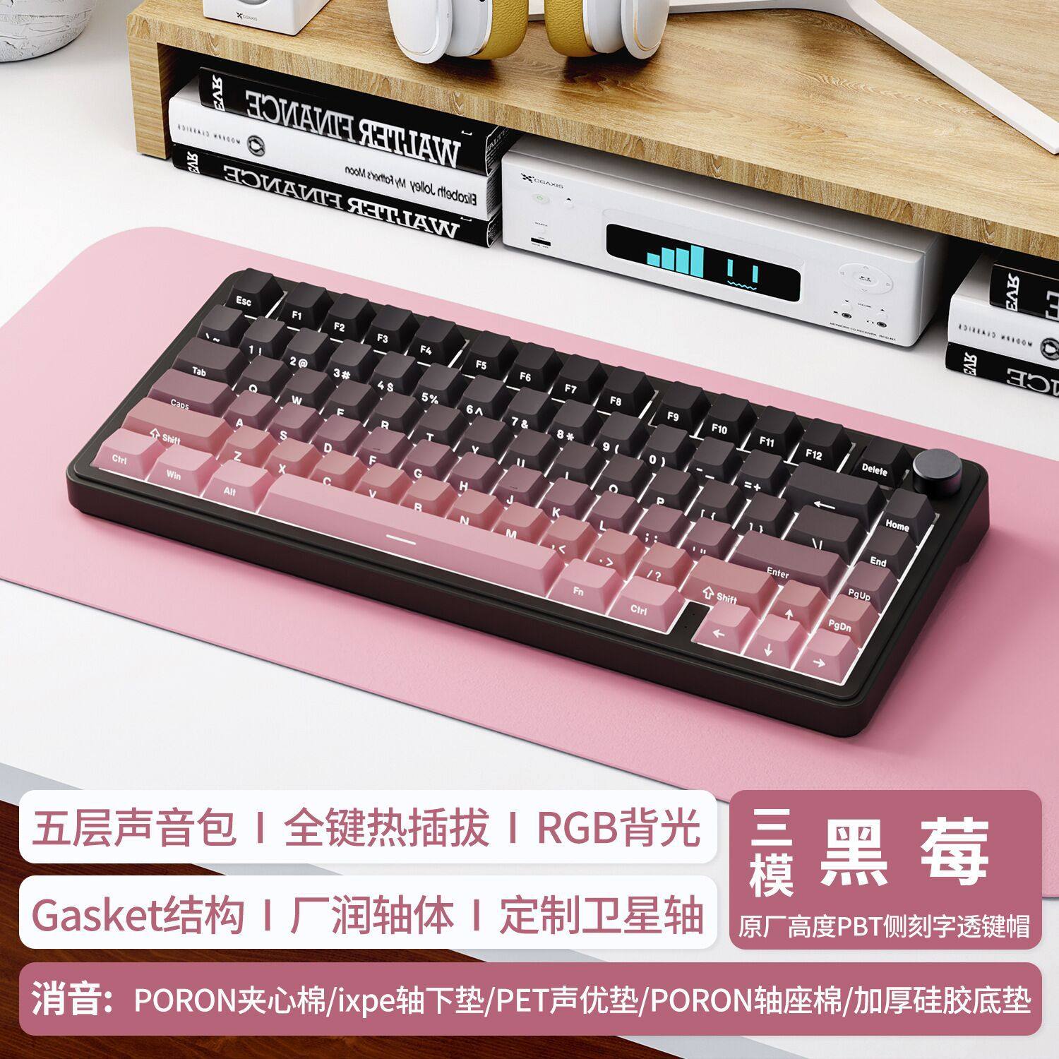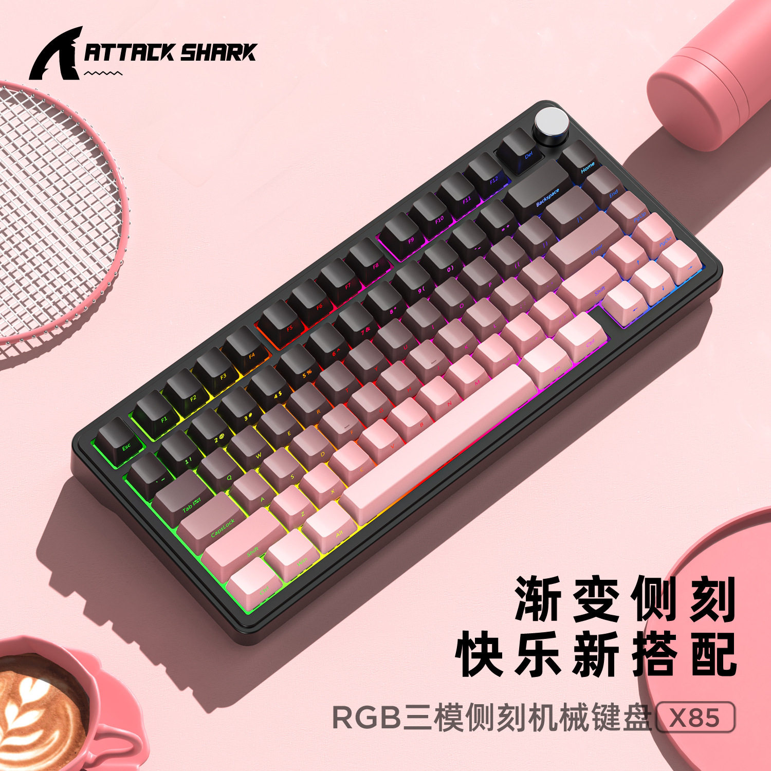 攻击鲨X85机械键盘RGB三模无线蓝牙热插拔侧刻游戏客制化发光键盘