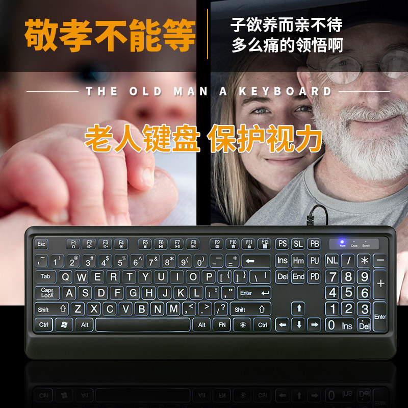 老人键盘背光大字体有线键盘拼音发光键盘老花弱视老年人专用键盘