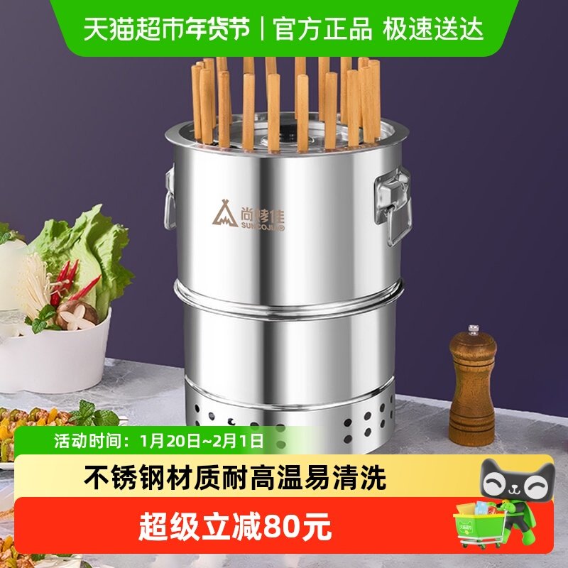 不锈钢烤肉炉圆形商用木炭烧烤炉具家用户外便携式烤串炉子煮茶炉