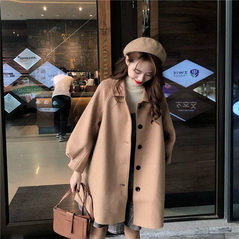 - 茧型呢子大衣 女 韩版