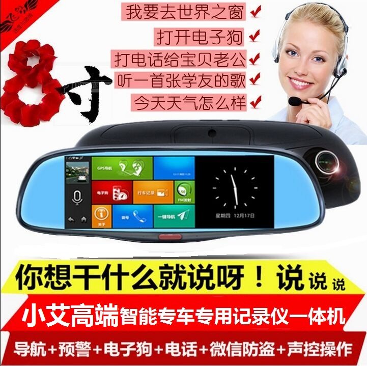 小艾8寸/7寸专车专用高清智能云镜声控导航记录仪电子狗一体机