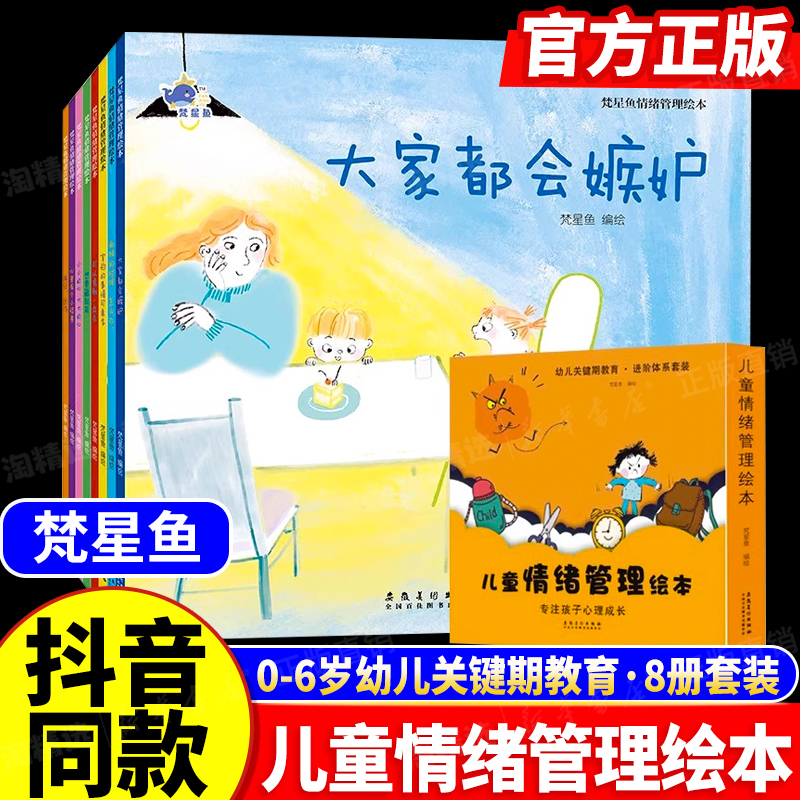 【抖音同款】0-6岁儿童情绪管理绘本全套8册正版梵星鱼情绪管理与性格培养儿童绘本大家都会嫉妒 男孩逆商 心里有个小怪兽害怕的事