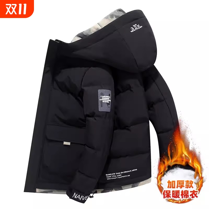 冬季新款男士棉衣外套加厚保暖连帽工装夹克潮流百搭休闲冲锋衣男