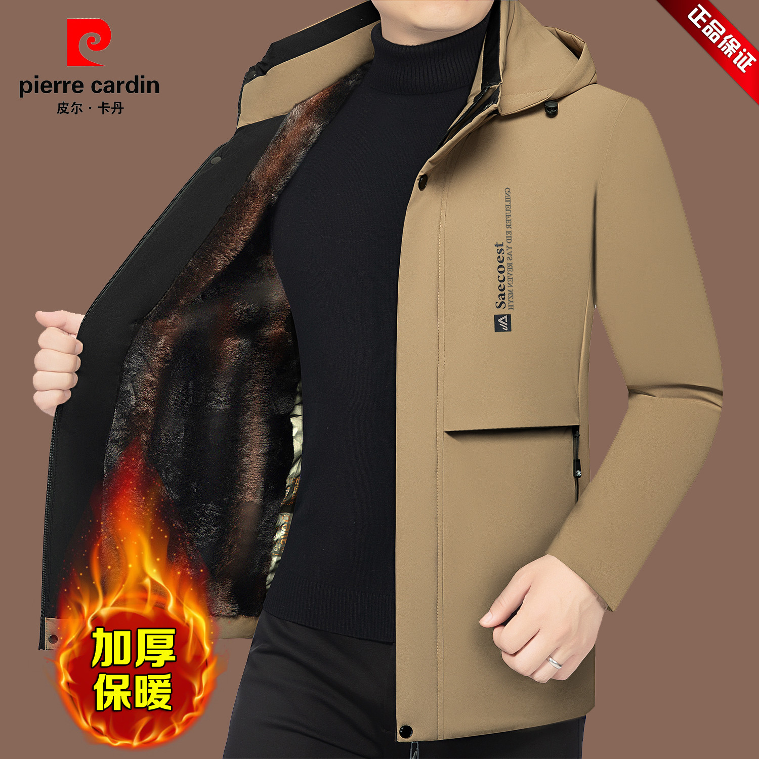 皮尔卡丹冬季加绒加厚派克服棉衣外套中老年商务休闲棉袄男士棉服