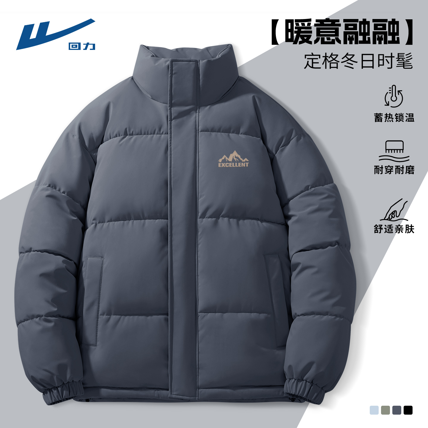 回力男士棉服美式潮牌方块立领棉袄青少年保暖防寒冬季男款外套D