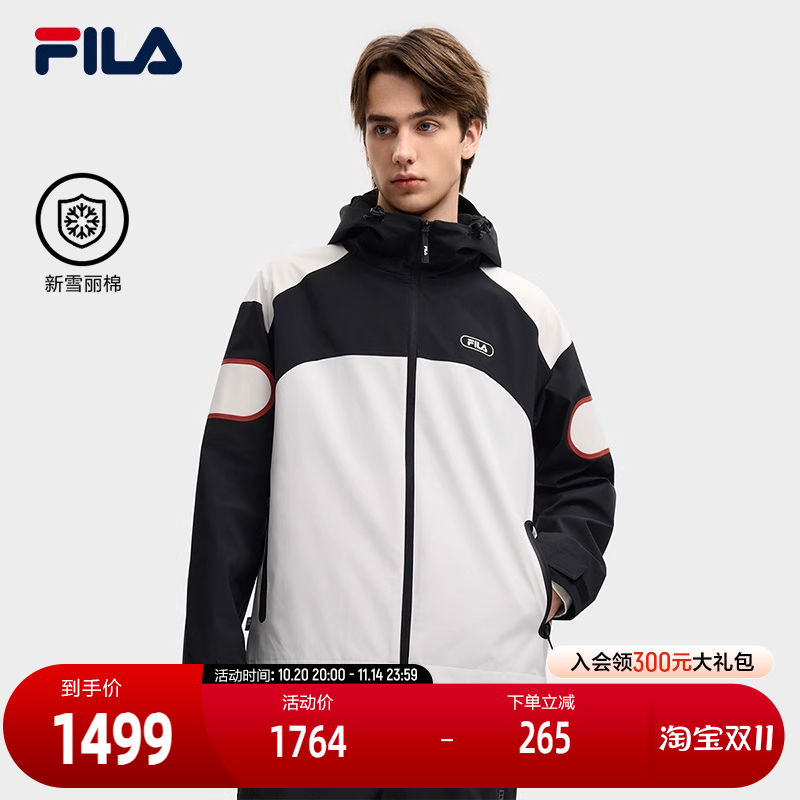 FILA 斐乐官方男士棉服2025冬新款时尚休闲宽松拼色保暖连帽外套