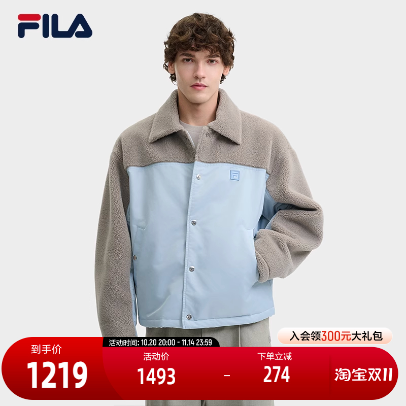 FILA 斐乐官方男士棉服2024冬季新款时尚休闲羊羔绒拼接保暖外套