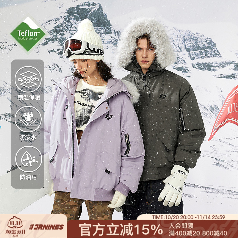 FORNINES三防派克服毛领棉衣男女情侣潮牌冬季防寒衣美式工装外套