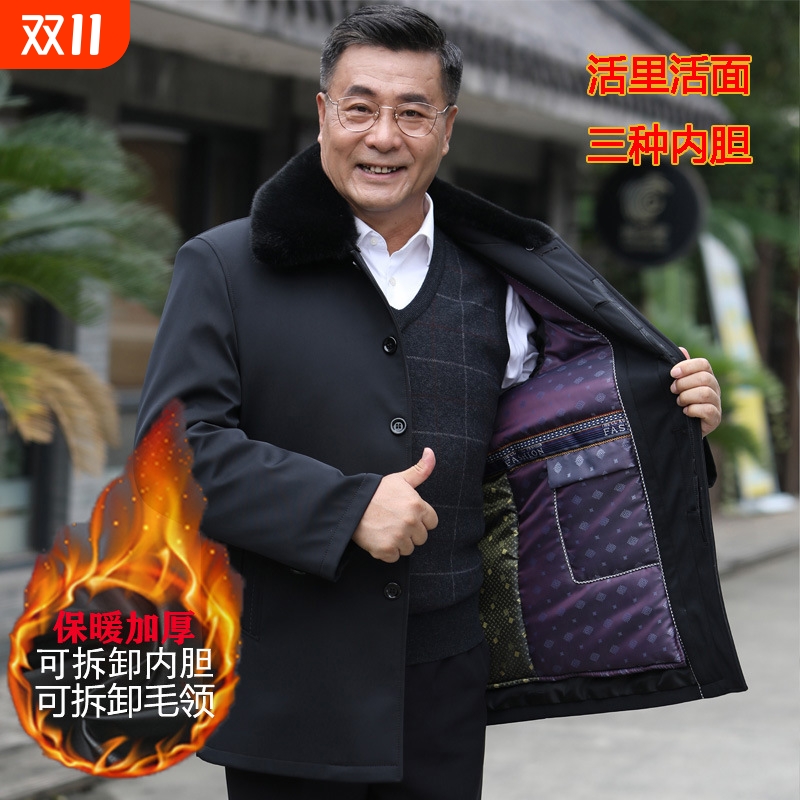 欧洲站冬季中老年男士棉服内胆毛领可脱卸活里活面棉衣老年尼克服