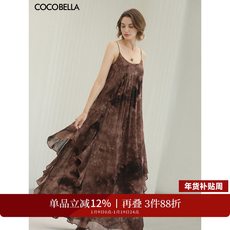 【3件5折】COCOBELLA绒雪纺连衣裙女夏长裙吊带裙两件套FR7067