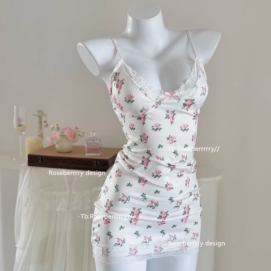 Roseberrrry 碎花清新甜美吊带裙女性感包臀辣妹风睡裙秋季家居服