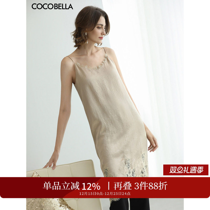COCOBELLA[100%醋酸]蕾丝拼接肌理感连衣裙女吊带裙FR0081-2