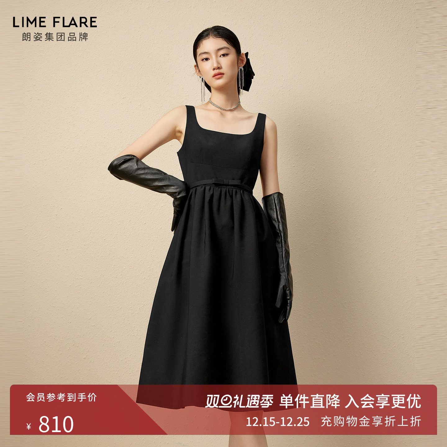 莱茵福莱尔2025夏季新款吊带裙蝴蝶结赫本风收腰A字黑色连衣裙