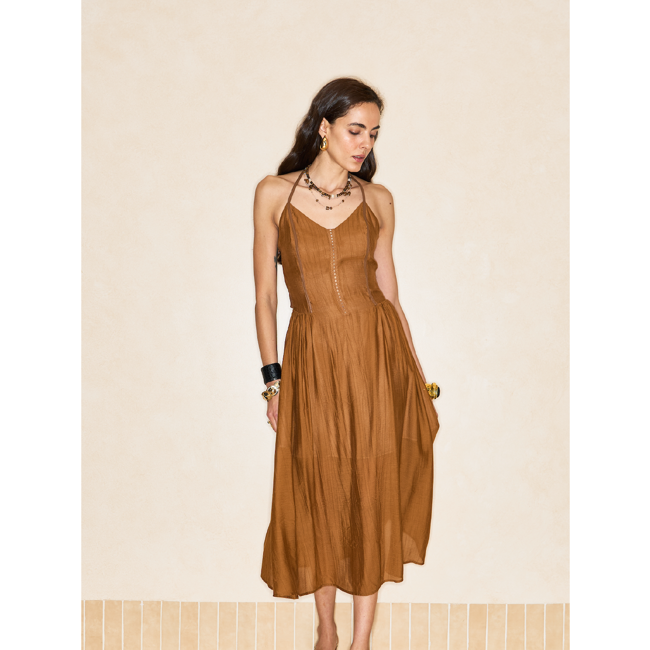 House of CB 复古文艺风方口领吊带杏色棉质太阳裙 Vivien