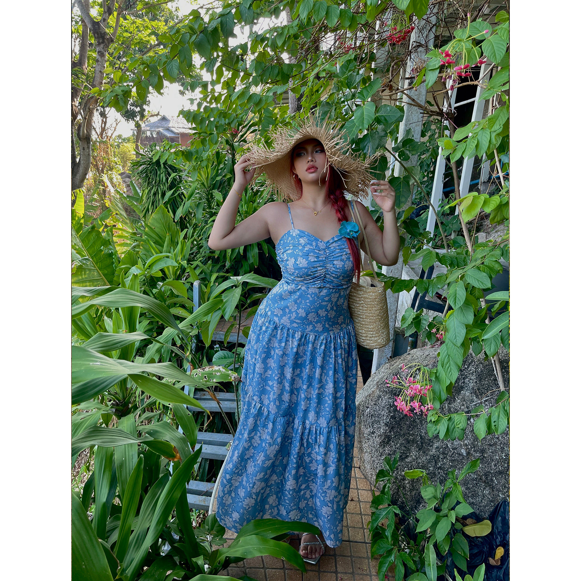 BM连衣裙蓝色碎花吊带裙2025新款女夏季初秋气海边质超好看连衣裙
