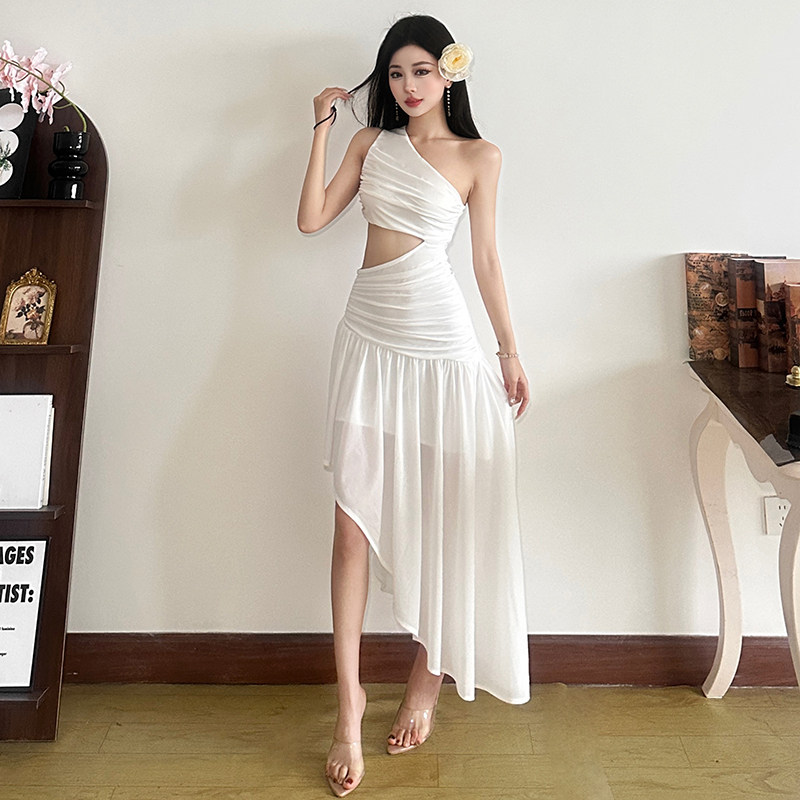 #Sisjuly# 清冷女神风飘逸灵动露腰不规则吊带裙女 显瘦连衣裙潮