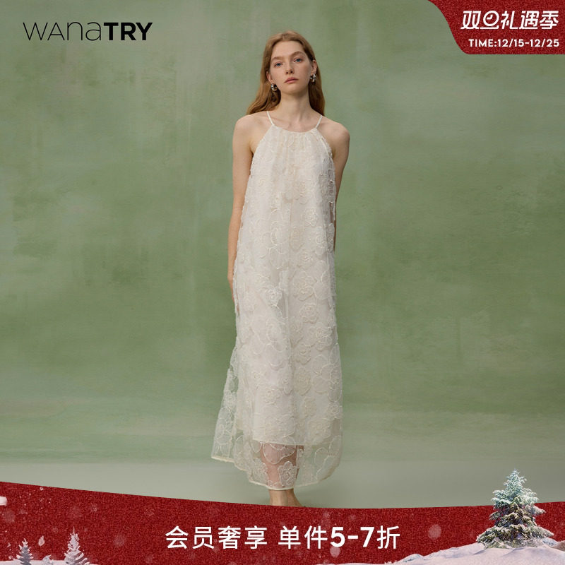 wana try重工仙女连衣裙度假裙子夏季女装海边沙滩吊带裙仙气长裙