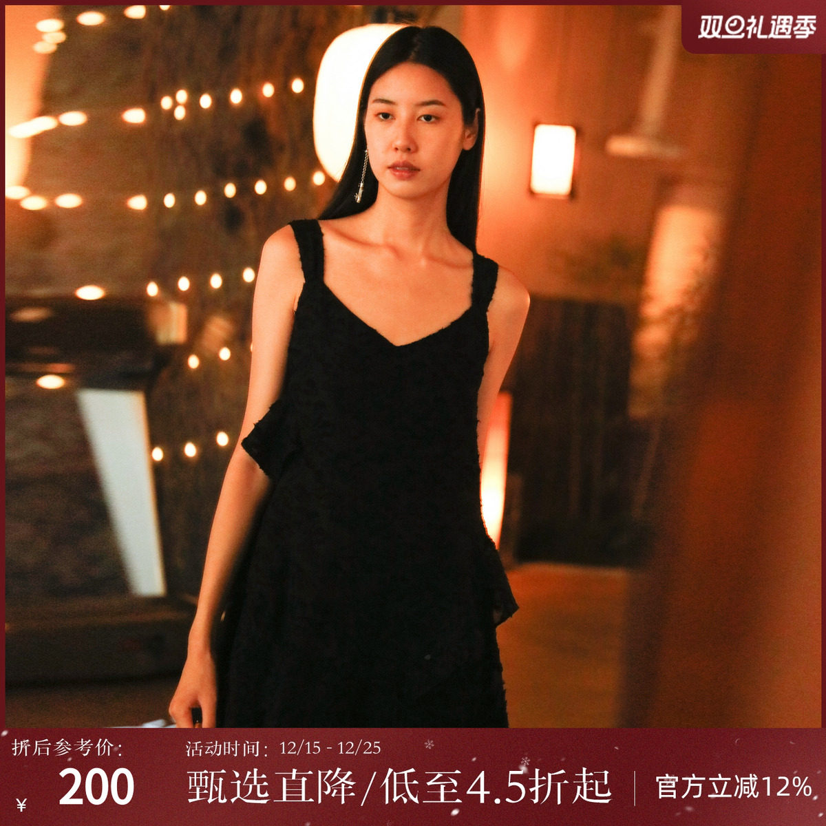 MB MindBridge秋季设计感西装裙女士老钱风连衣裙黑色开衩吊带裙