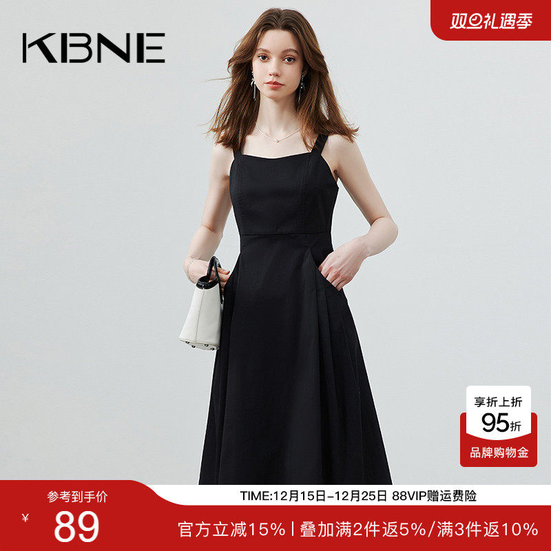 KBNE连衣裙女吊带裙小黑裙2025秋季新款黑色气质法式小众设计裙子