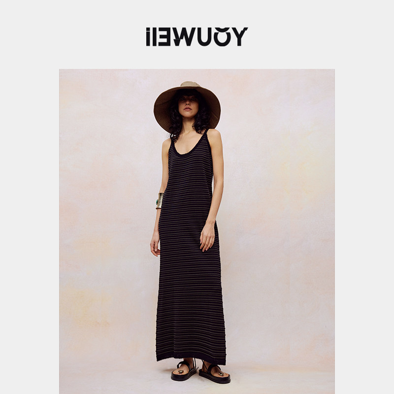YOUWEI有尾夏季法式肌理条纹吊带裙女夏连衣裙Y5724201