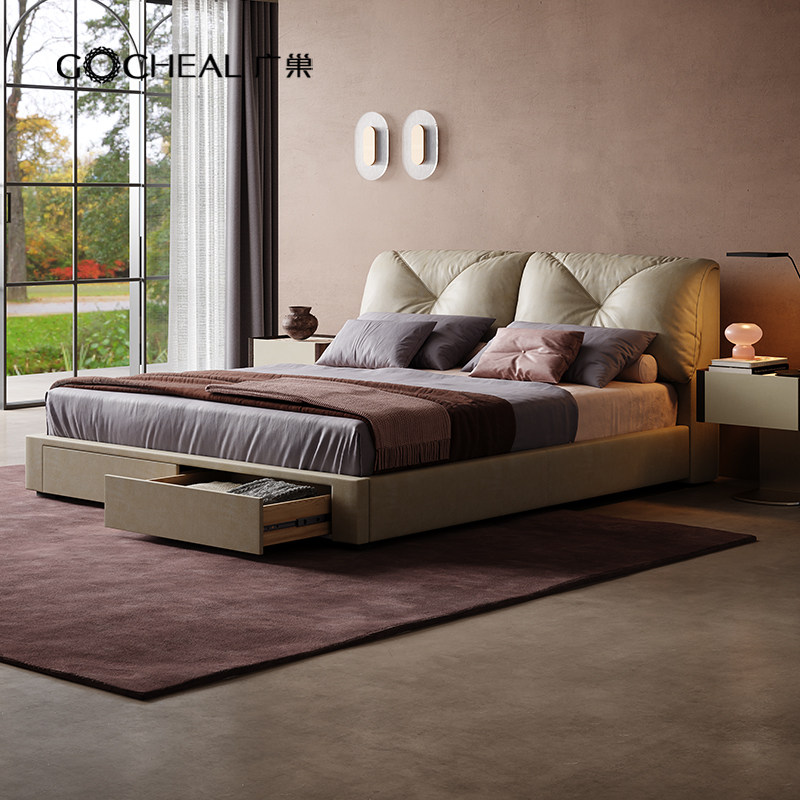 帕沙曼 真皮床复古主卧双人床储物意式极简羽绒头层牛皮软包婚床
