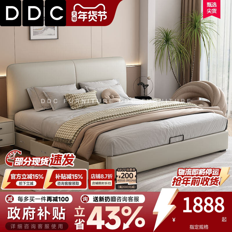 政府补贴DDC真皮床可调节靠包床意式极简小户型双人床储物床1米8
