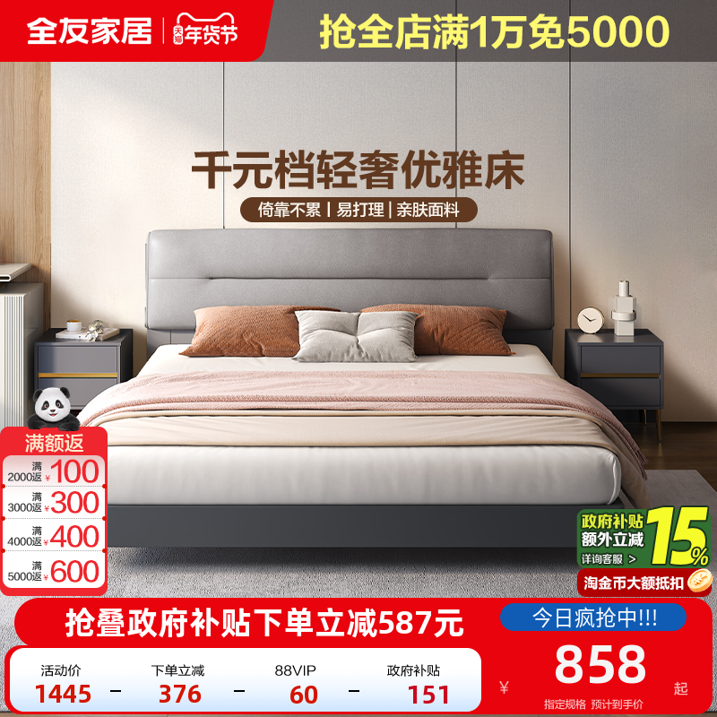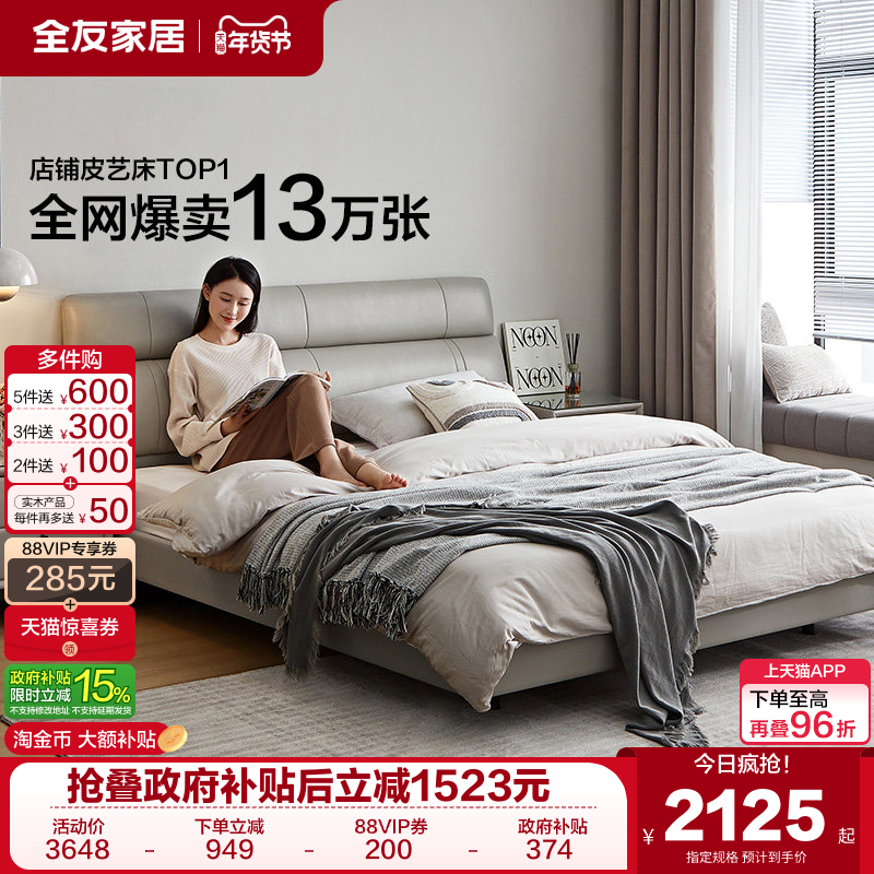 政府补贴全友家居轻奢意式极简1米8主卧大床双人床储物卧室悬浮床