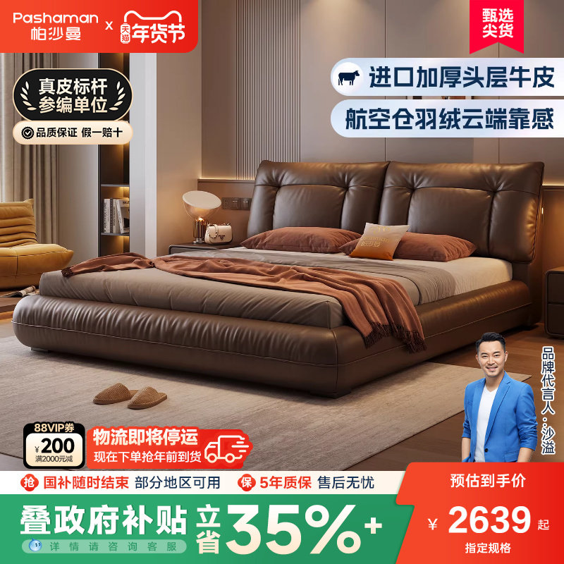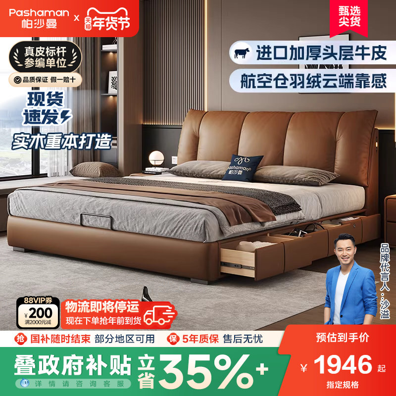 政府补贴帕沙曼真皮床落地储物床意式主卧大床1米8双人床软包床架