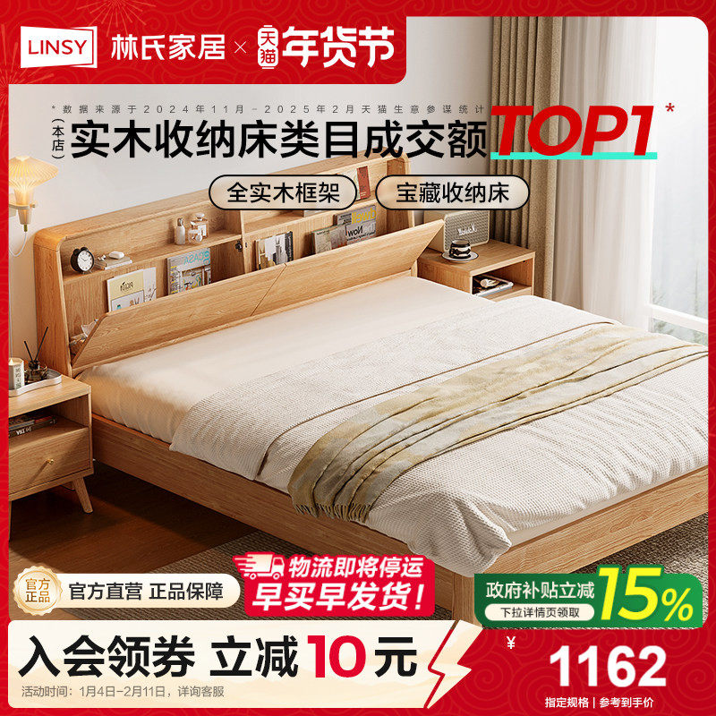 林氏家居实木床1米5软包双人床储物箱体床2025新款木业小满系列