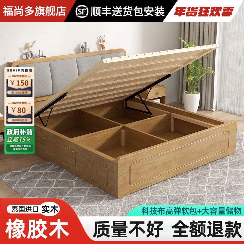 福尚多实木气压高箱床1.5米收纳床现代简约家用1.8米双人床储物床