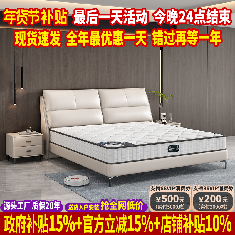 政府补贴主卧室高端大气真皮床双人床储物现代简约科技布实木婚床